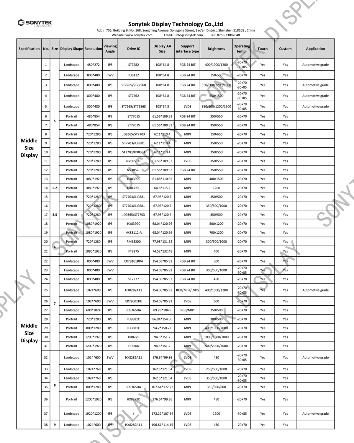 SONYTEK is an lcd screen manufacturer, providing a full range of 1.44 inch to 13.3 inch small and medium size standard quasi TFT LCD modules, TFT screen modules, TFT display modules, display industry, industrial LCD screen, visually outstanding TFT LCD display in sunlight screen, industrial custom TFT screen, TFT full temperature LCD screen, industrial TFT LCD screen, industrial touch screen. TFT LCD modules are ideal for industrial control equipment, medical devices, POS systems, consumer electronics, communication equipment, office supplies and more.